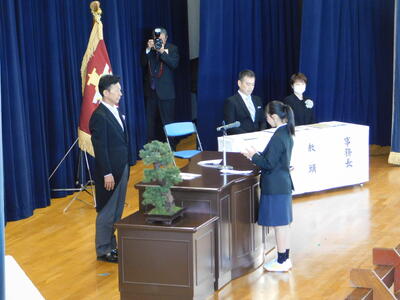 緊張している人もいれば、笑顔を浮かべ楽しそうにしている新入生もおり、それぞれがそれぞれの思いを持ち、この入学式に臨んでいるように思われました。入学許可の呼名の際には大きな声で返事をしている人が多かったことが印象的でした。今日から皆さんも玉村高校の一員です。ここでさまざまなことを学び、楽しみ、充実した高校生活を一緒に送っていきましょう!